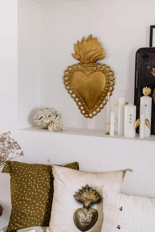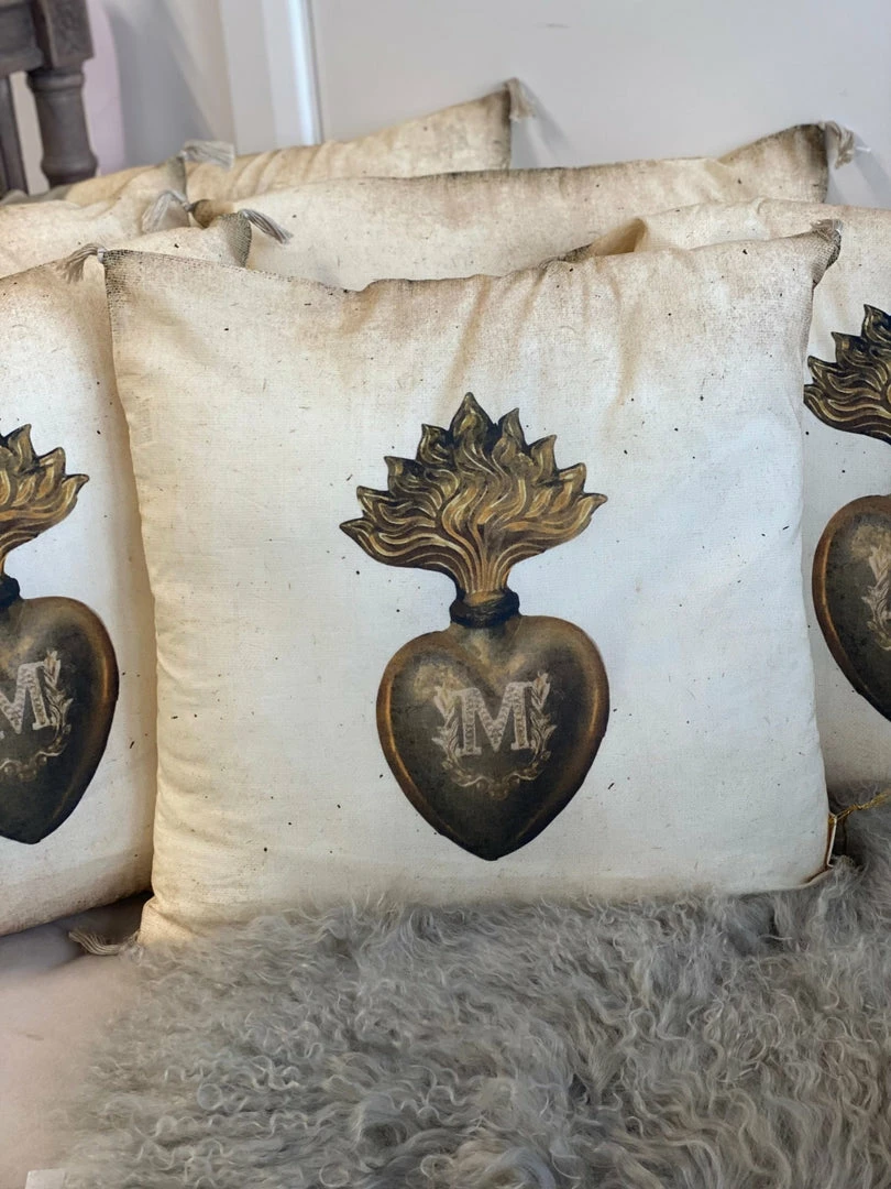 We adore cushions and this vintage style Β cushion with an ex voto gold heart would be perfect on any sofa, bed or chair. It has an antiqued charm and will bring a sense of decadence to your living space and will makeΒ the perfect finishing touch, along with a sumptuous feel.