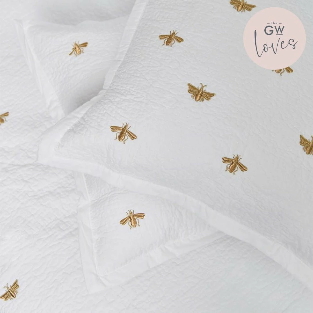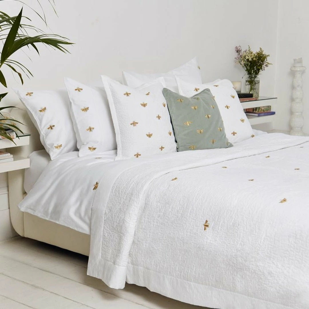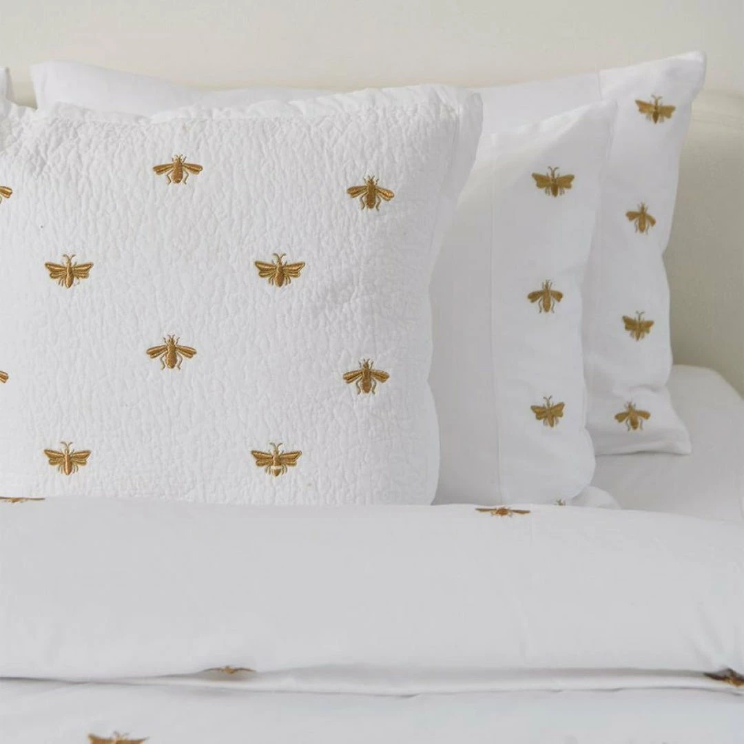 These luxuriously soft 100% cotton sateen bedding cushion covers are made to hotel quality standard. TheΒ golden bumblebee design has been delicately embroidered onto a textured cushion cover to add the perfect finishing touch to any bedroom.Β Β