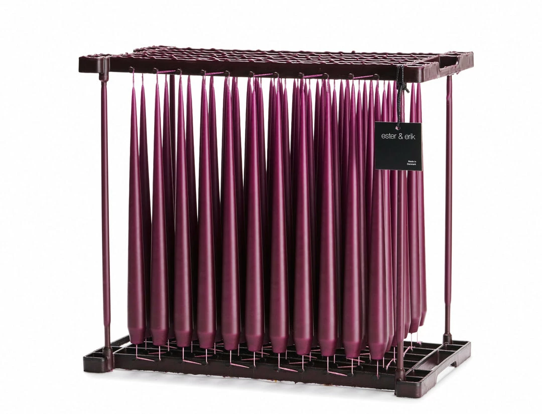 Our tapered dining candles are 42cm long, will burn drip free (without a draught) ย for 11 hours and come in a presentation packet. We also offer a discount of 20 percent when you order 10 pairs or more. Your order will then be delivered in custom boxes.