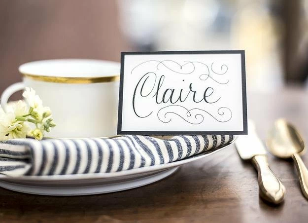 Β With a classic design Β place cards are an easy way to add a personal touch to your dining occasion. Β A bold black frame is printed onto crisp white paper, making it suitable for any colour scheme.