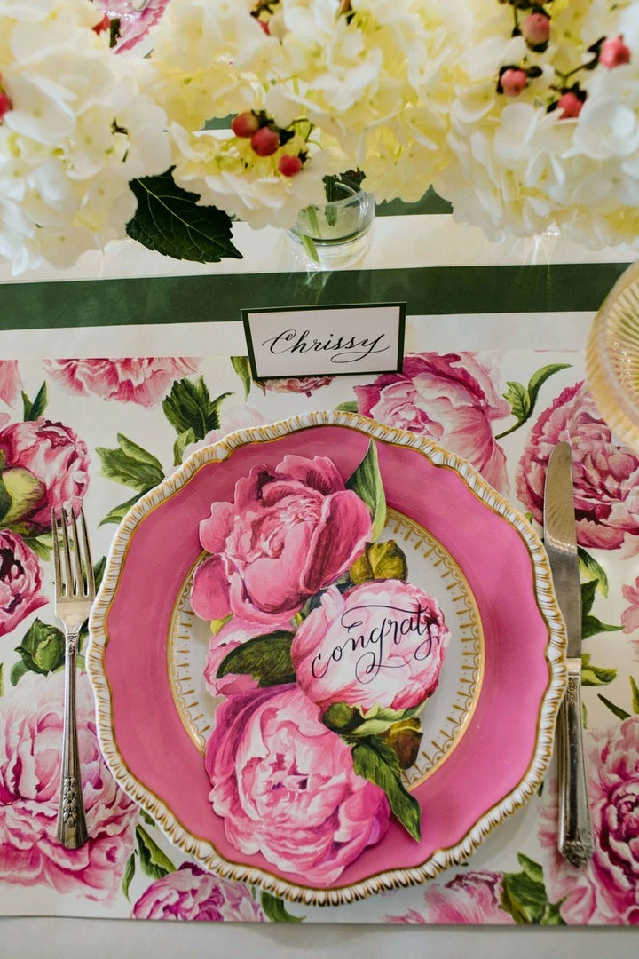 These stunning peonyΒ paper accents will add to beautiful touch of elegance to any dining table.