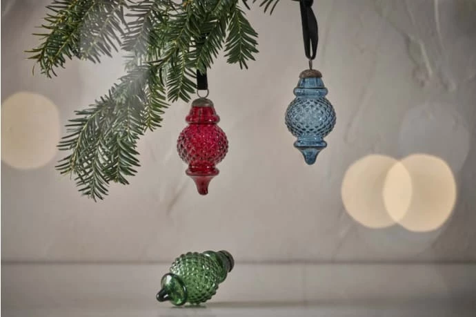 These Layli lantern baubles have a timeless vintage elegance that is enhanced with a sophisticated colour palette. The feathered design adds to the vintage look making them an attractive tree decoration and festive display.