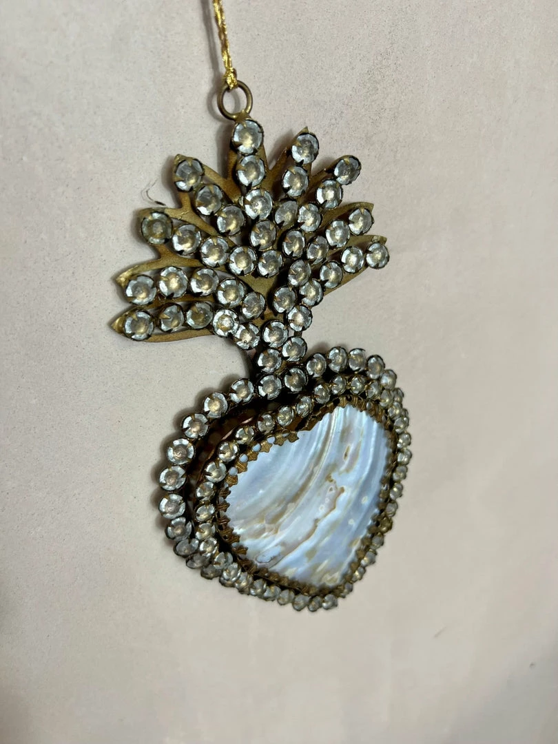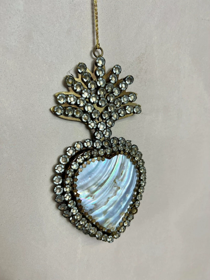 We love this stunning hanging heart. It has a beautiful antique beaded effect to give a wonderful vintage feel. The pearlised centre adds to the decadence of the piece. Simple and elegant on its own or group together to create a dramatic effect.