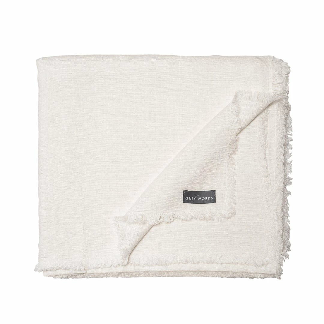 In a classic and crisp white this tablecloth is the perfect size and weight. It measures approximately 350cm x 140cm and also works beautifully thrown over a sofa or bed to inject a little French style.
