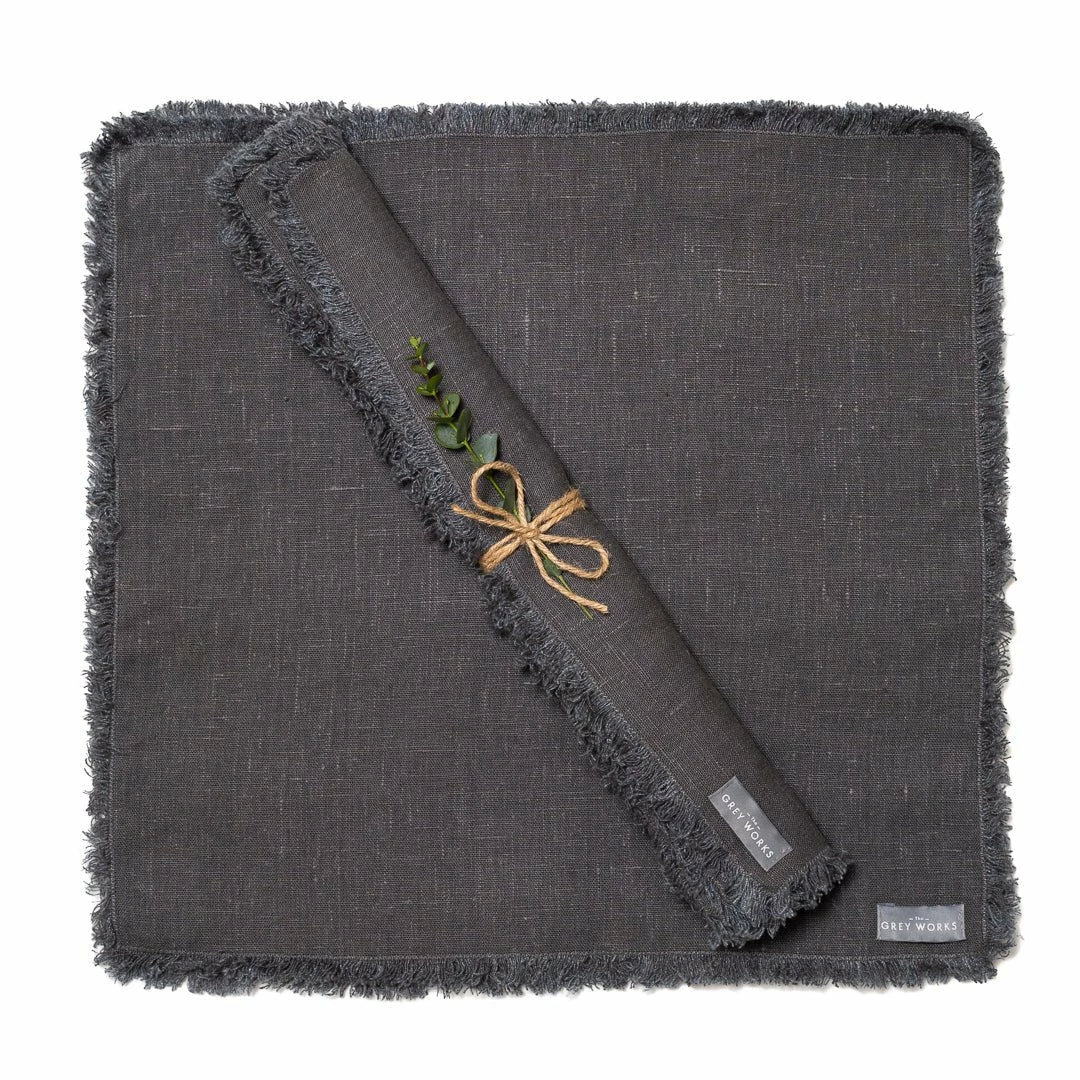 We love a well-dressed table, and our gorgeous charcoal grey linen napkins really set the scene in style. Made from premium French linen, each one features artfully frayed edges complete with stitching to preserve the pattern and makes a stylish ย statement to your tablescape. They will coordinate perfectly with the rest of our linen collection including tablecloths and placemats.