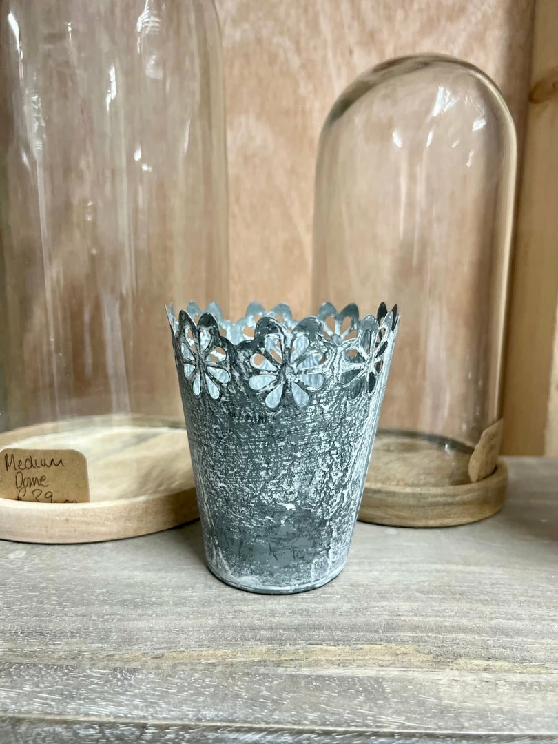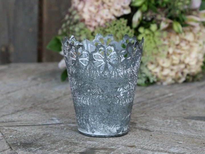 These gorgeous French Style zinc flower pot will make a stunning addition to any indoor or outdoor space. Perfect for small plants or floral arrangements.