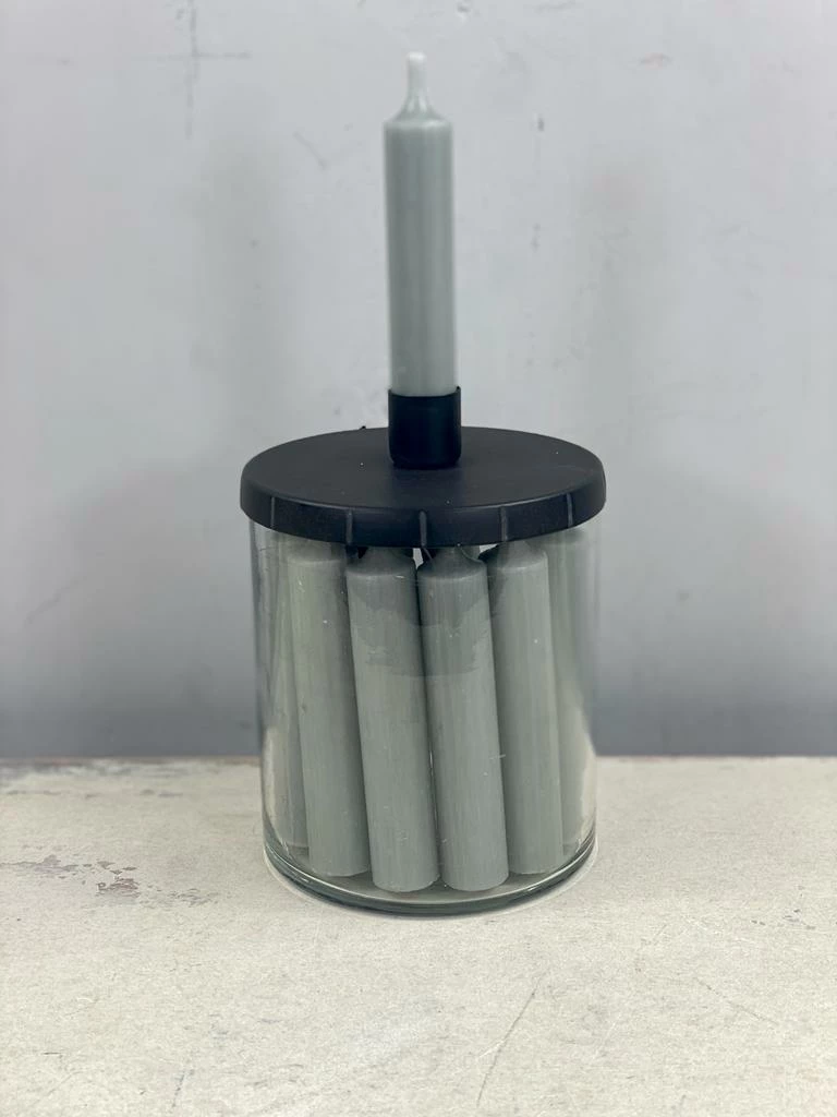 Promo β The Grey Works Glass Candle Holder With Twelve Dinner Candles In Charcoal π