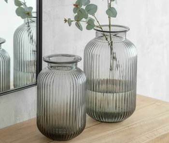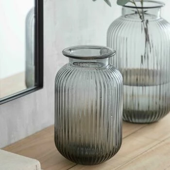 Just as stylish filled with blooms or left empty, this Ribbed Vase is super sophisticated with a subtle smoked colour darkening to the base. Accessorise consoles, create a focal point in windowsills or a striking centrepiece on dining tables.