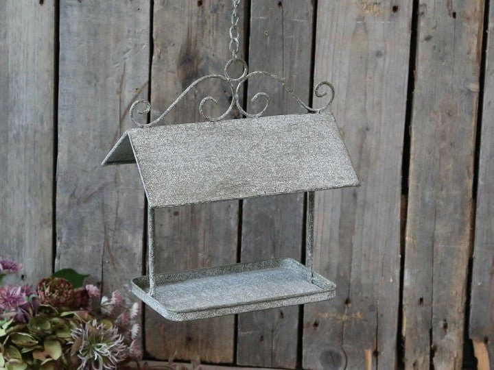 Welcome the birds into your garden in style with this beautiful vintage style bird tray. It comes with a stylish metal hook which makes it easy to hang from a tree or fence. The flat tray makes it accessible to the birds and makes feeing a joy!