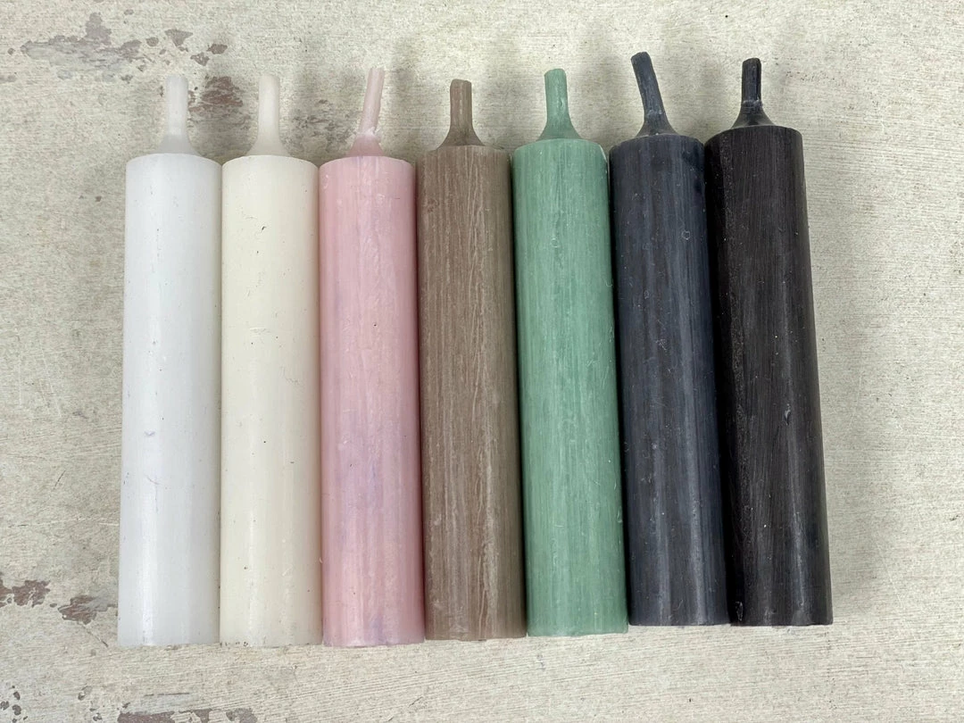 Choose white, cream,taupe, green, charcoal or black. (pink have sold out) See the photo below. Candles are 11cm high and 2cm did and will burn for approximately 4.5 hours.