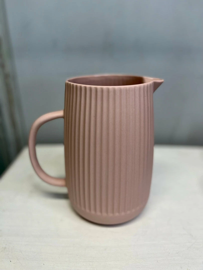 Clean, crisp and contemporary. Gorgeous pastel pinkΒ with vertical ridges, the Linear Jug is the perfect tabletop companion for dining indoors and out. For juices, water and gin mixers. Β Also available in rosemary green.