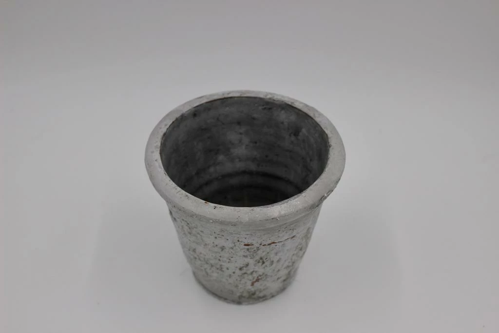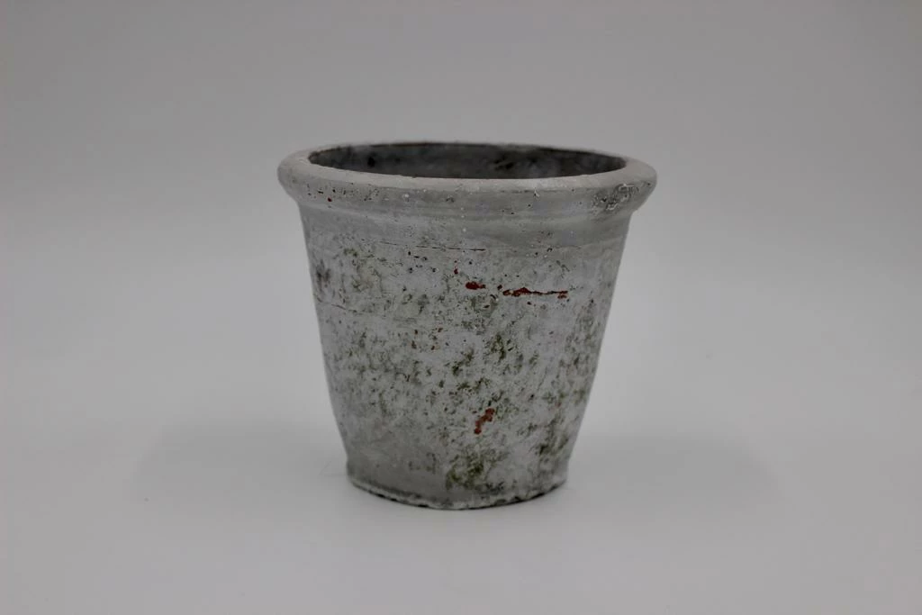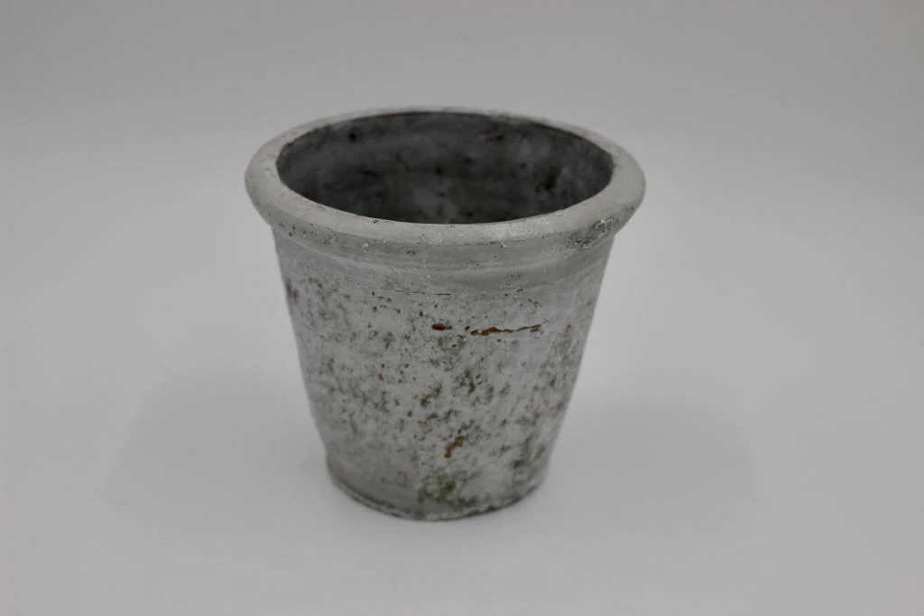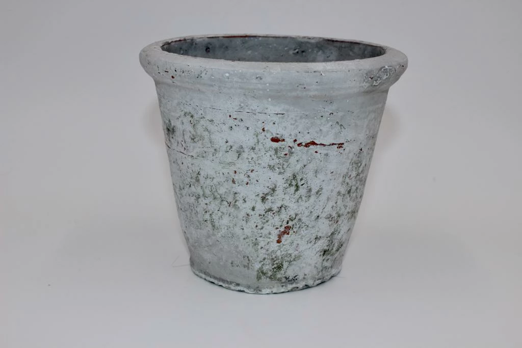 This versatile old style clay pot with patina is ideal for displaying small plants inside and outside.