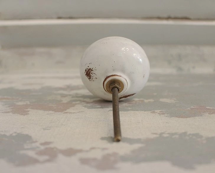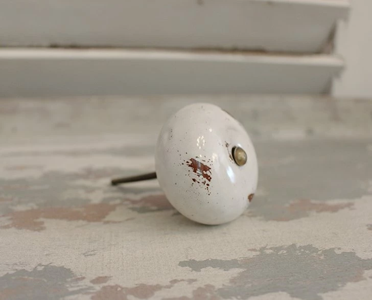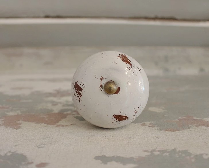 Β A simple accessory that will finish off your living dΓ©cor with elegance and ease. This neutral white handle will match with any colour scheme and the glazed and distressed finish gives it an instant vintage feel. 6cm across and the depth if the screw is 5cm.