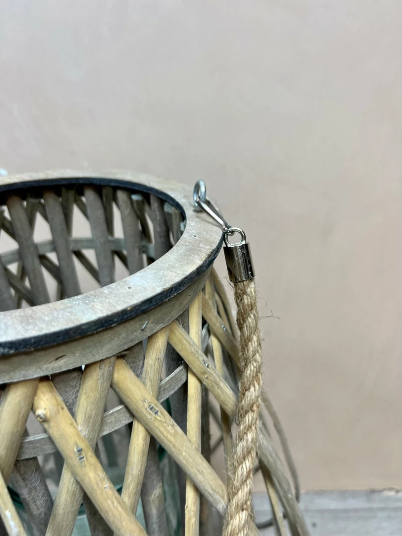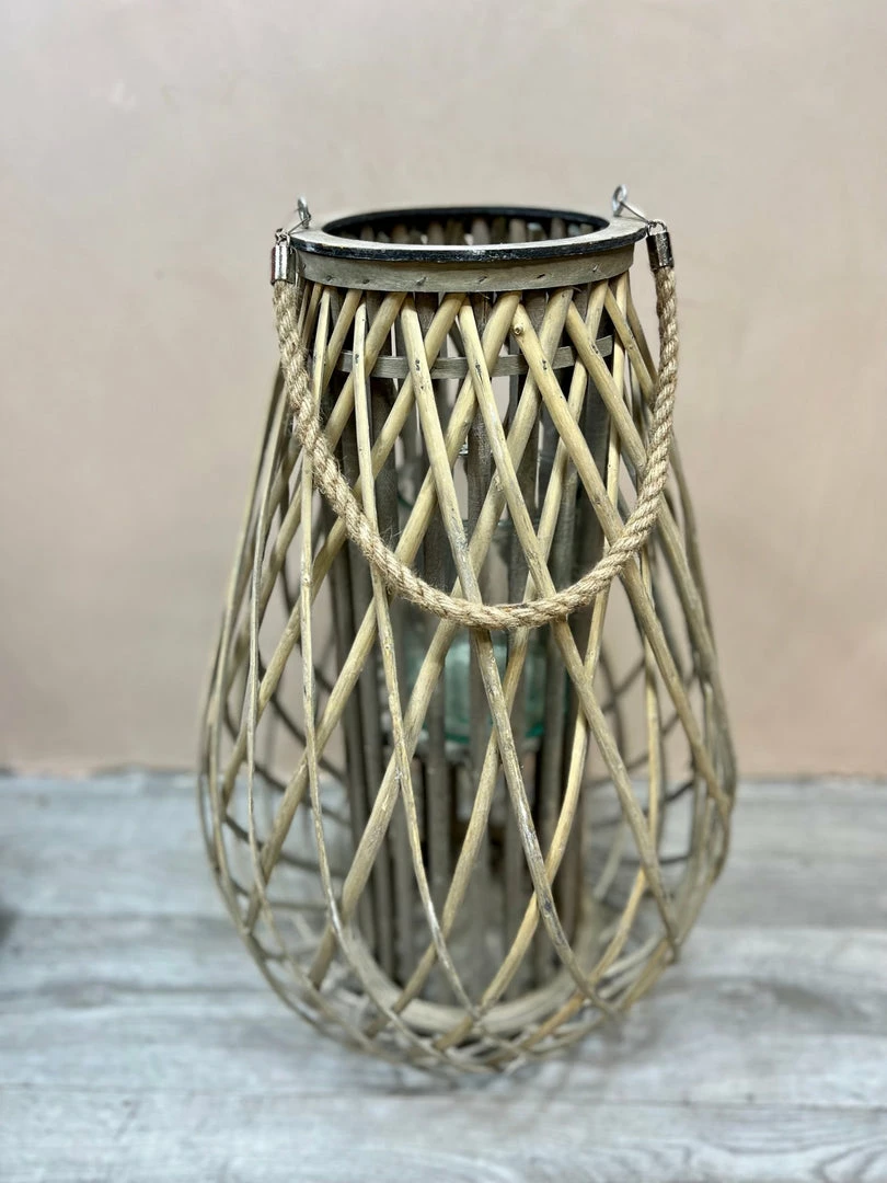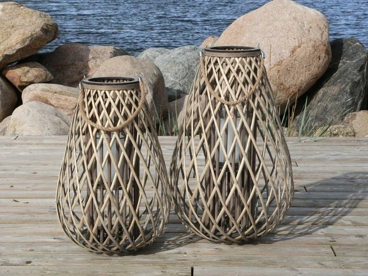 Used indoors or out, these gorgeous large lanterns will never fail to make a romantic impression. Crafted from braided willow and glass for an artisanal touch, this chic curved vessel can be carried by the useful rope handle for easy manoeuvrability. Simply place your favourite pillar candle inside and watch it cast stylish geometric shadows at your next garden gathering.