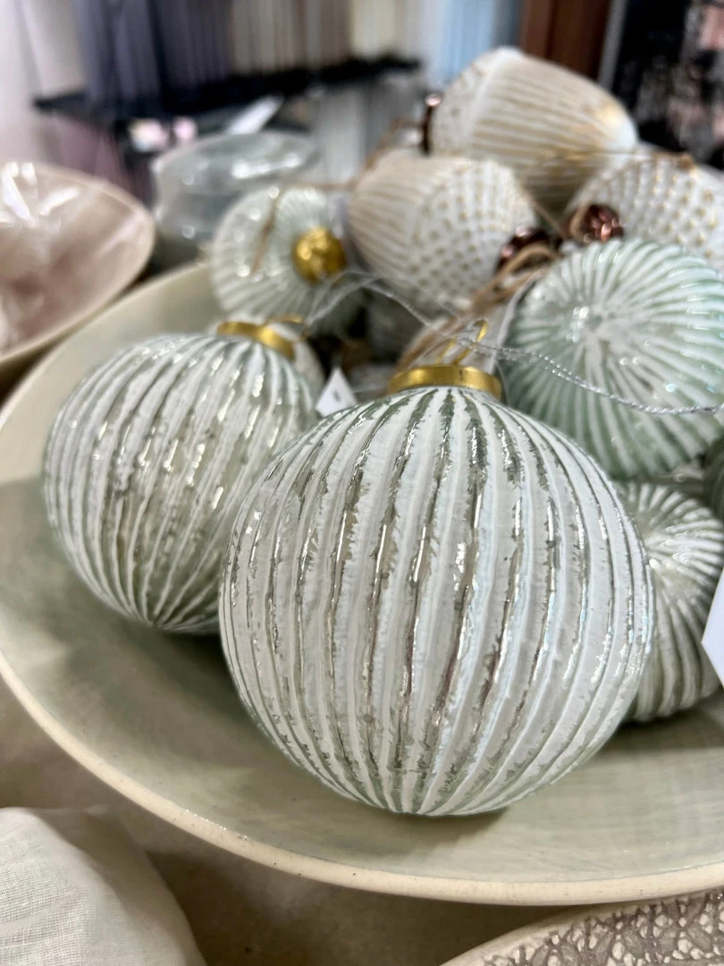 Simplistic and sophisticated, our antique white ribbed bauble is made to suit any kind of interior, whatever the colour. Carefully created, it would look beautiful hung upon a traditionally themed Christmas tree or placed in amongst a garland wrapped around a staircase to give it a touch of winter magic.