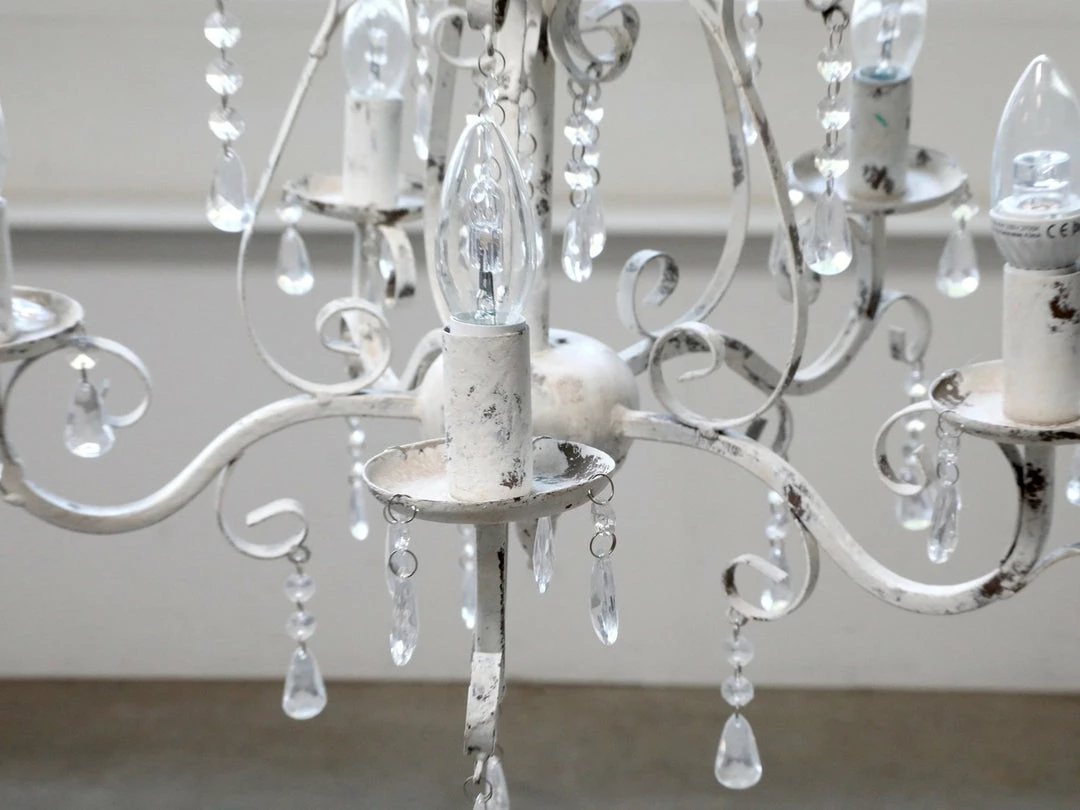 Handmade and craftedย from metal with beautiful crystal style droplets, thisย chandelier has five arms and is elegant and extravagant in equal measure!ย Simply breathtaking!.