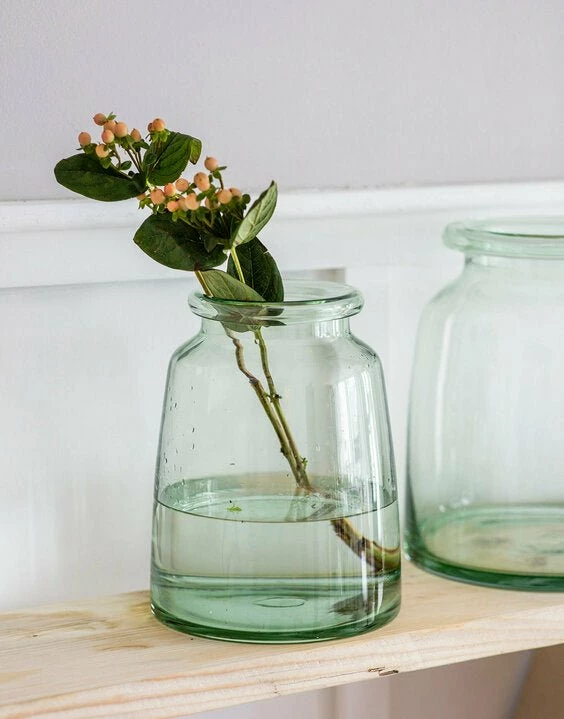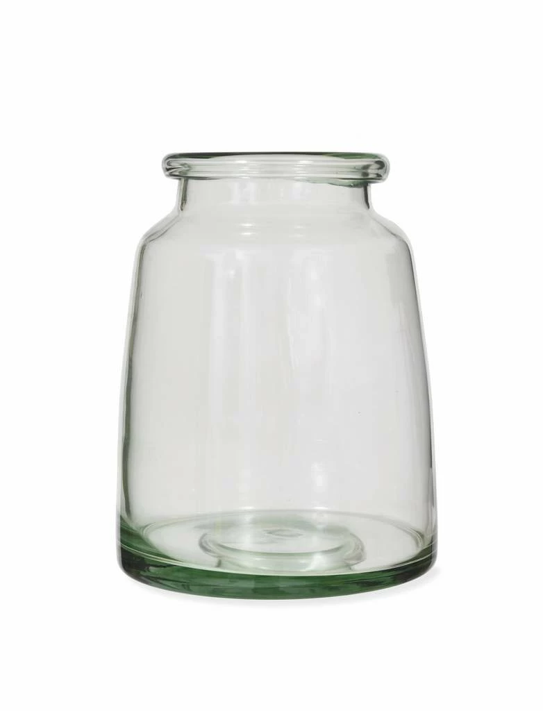 Inspired by vintage pickle jars, the Mickleton Vase is hand-blown from recycled glass with a distinctive chunky rolled rim and wide base. This makes it perfect for use with medium sized bouquets or a handful of beautiful big blooms like peonies, hydrangea and dahlias.