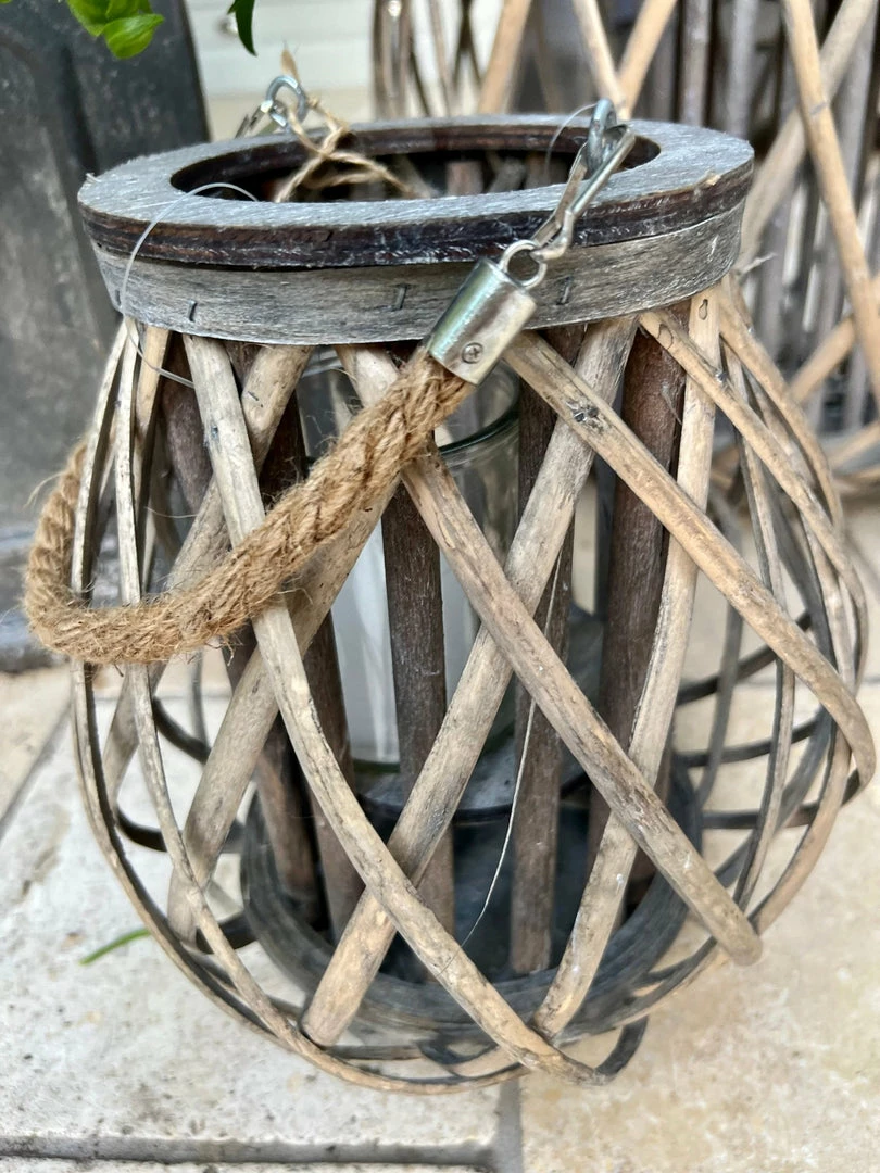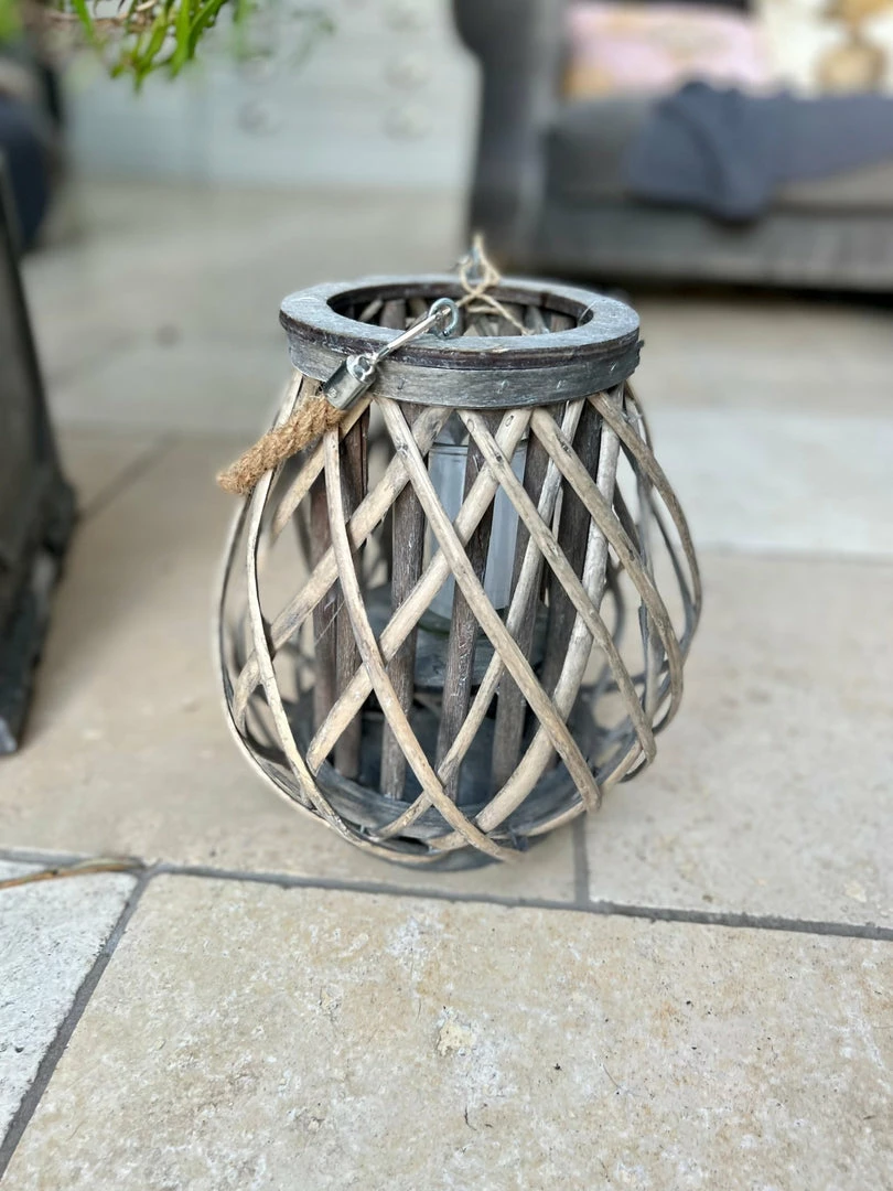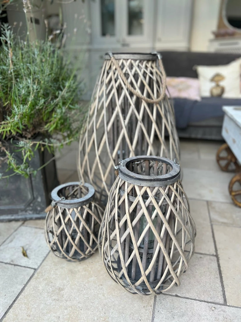 Used indoors or out, these gorgeous large lanterns will never fail to make a romantic impression. Crafted from braided willow and glass for an artisanal touch, this chic curved vessel can be carried by the useful rope handle for easy manoeuvrability. Simply place your favourite pillar candle inside and watch it cast stylish geometric shadows at your next garden gathering.