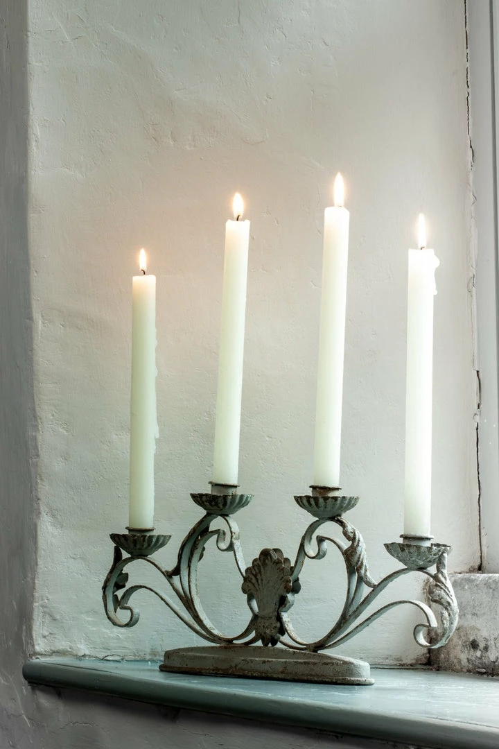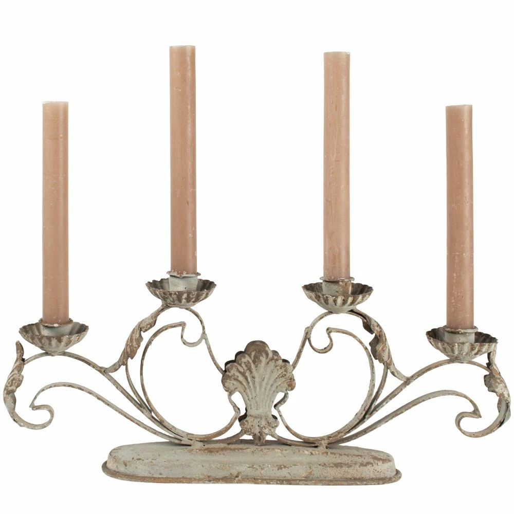 More stock on its way. This beautiful ornate candelabra will bring a rustic and vintage feel to your dining table. It really would make the most delightful centre piece. The detail is really quite stunning! It holds fourย candles and it would be complemented beautifully with any of the tapered dining candles from our ester & erik range. They come in over 60 shades. You are sure to find a shade that will suit any occasion!