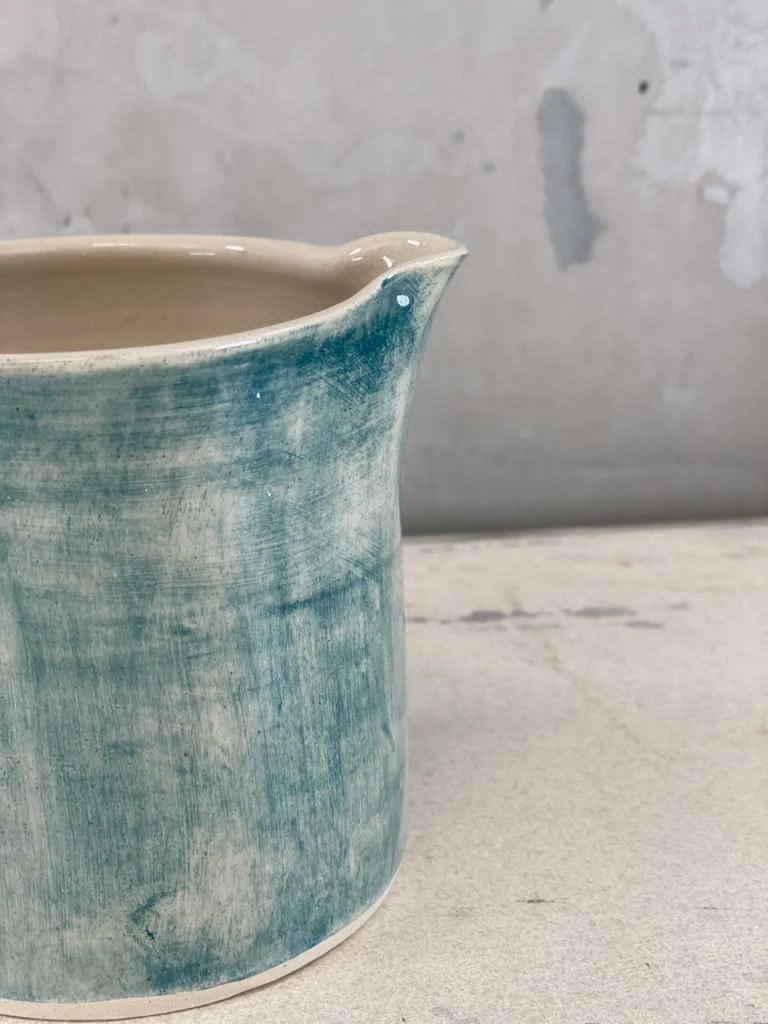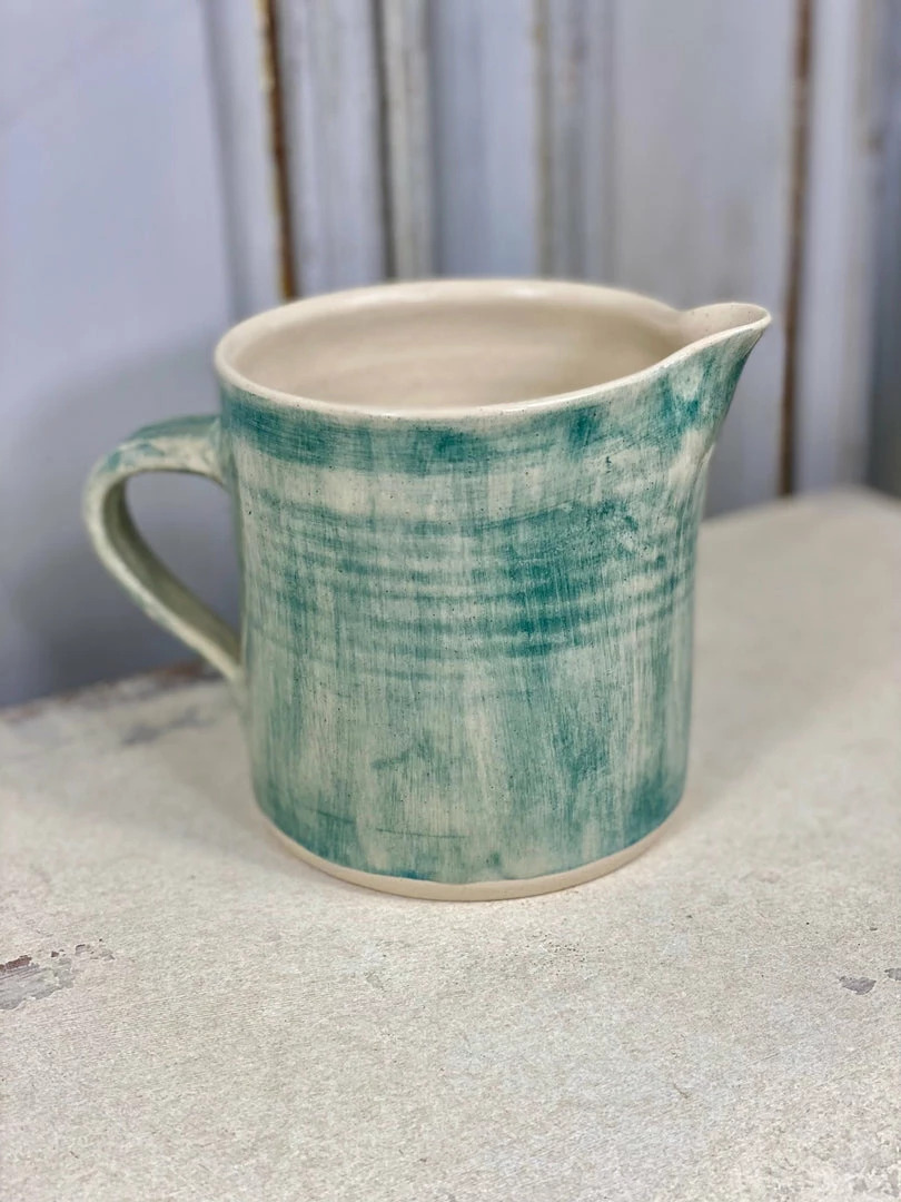 Wonki Ware handcrafted 500ml ceramic jug in a marine wash. Each piece of Wonki Ware is handmade, coloured and decorated by hand from organic clay in South Africa.