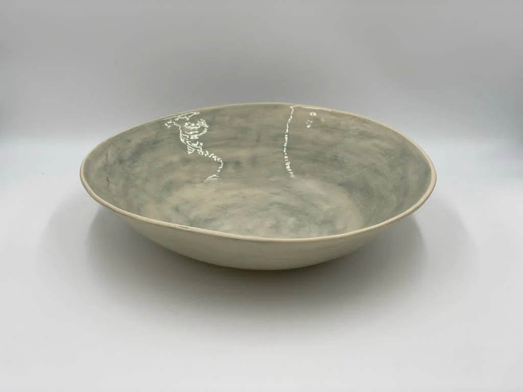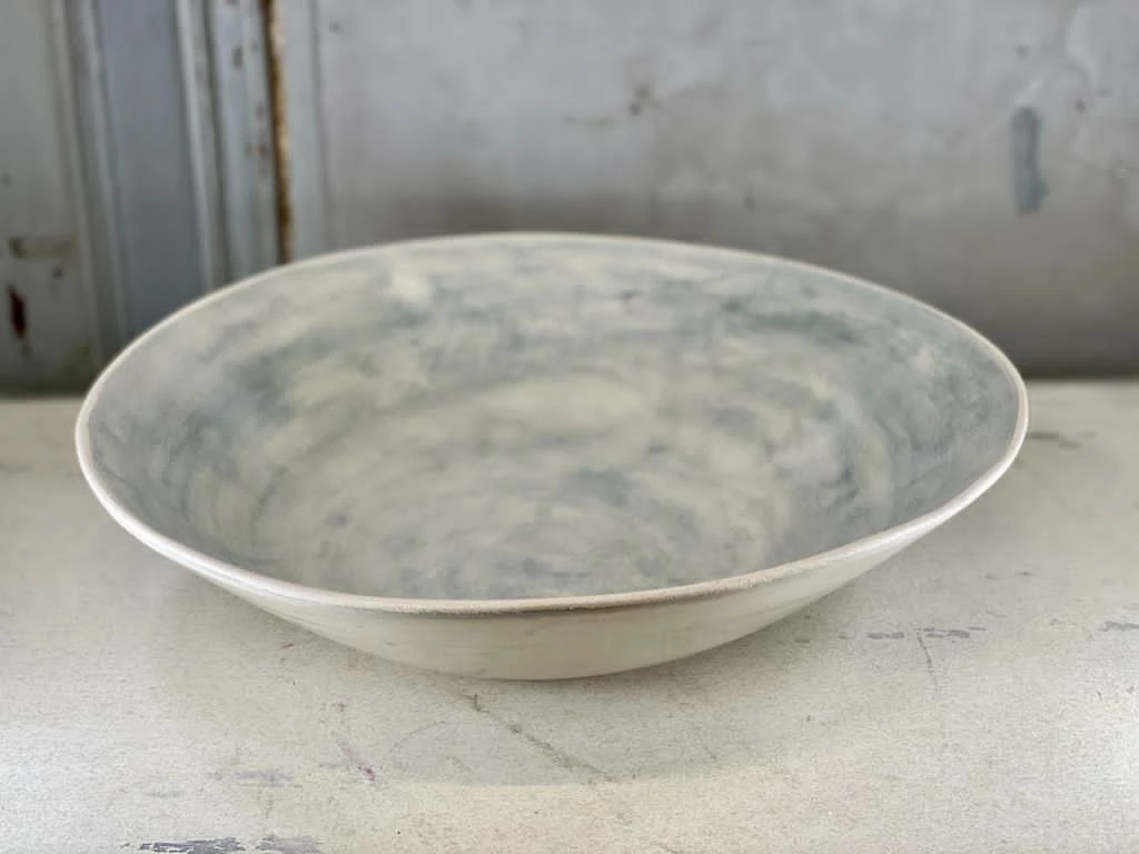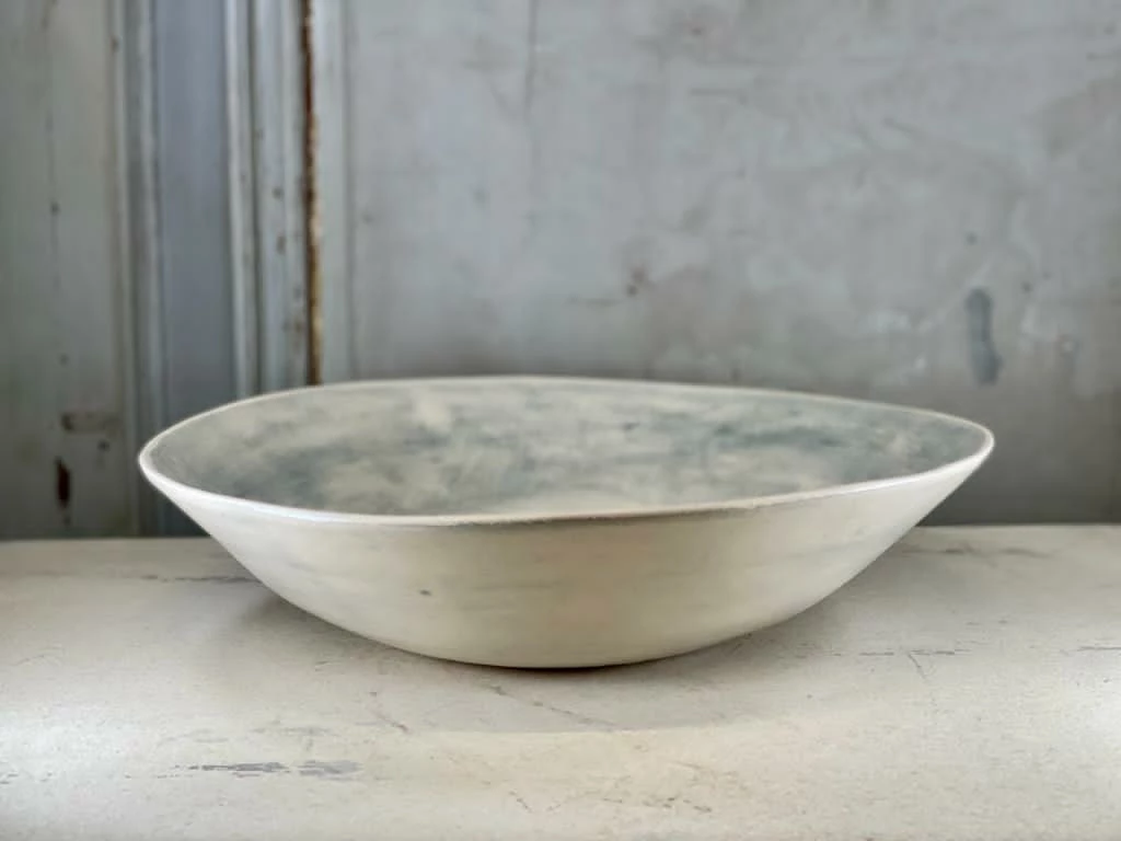 Perfect for salad, bread or fruit, this serving bowl in a plain wash duck eggΒ is a beautiful display piece. The most perfect of gifts each piece of Wonki Ware is made from organic South African clay, left to dry in the sun before being fire glazed, decorated and coloured entirely by hand.Β