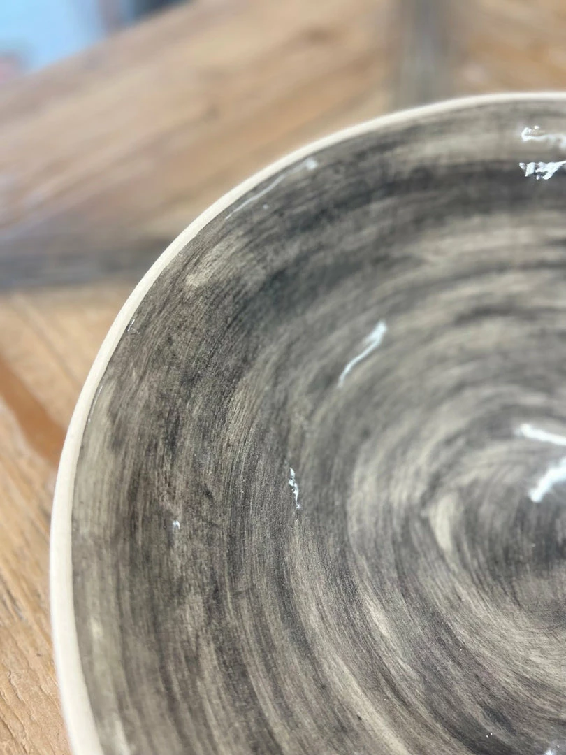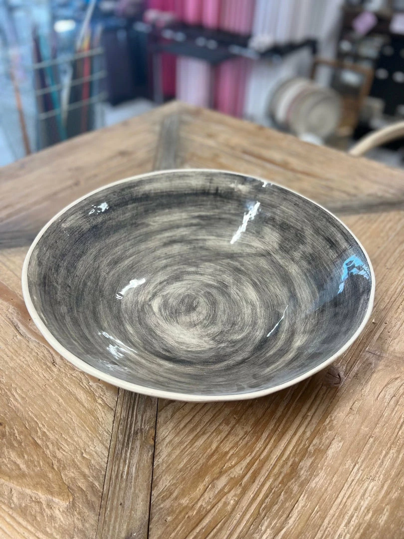 Perfect for salad, bread or fruit, this serving bowl in plain wash charcoal is a beautiful display piece. The most perfect of gifts each piece of Wonki Ware is made from organic South African clay, left to dry in the sun before being fire glazed, decorated and coloured entirely by hand.ย