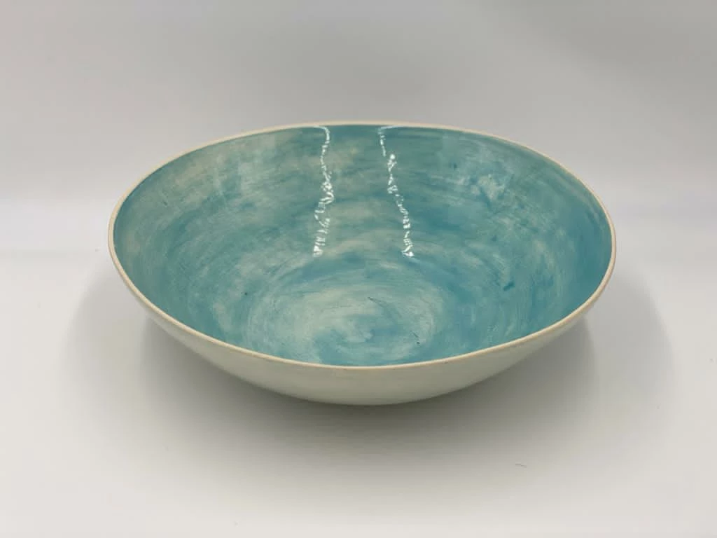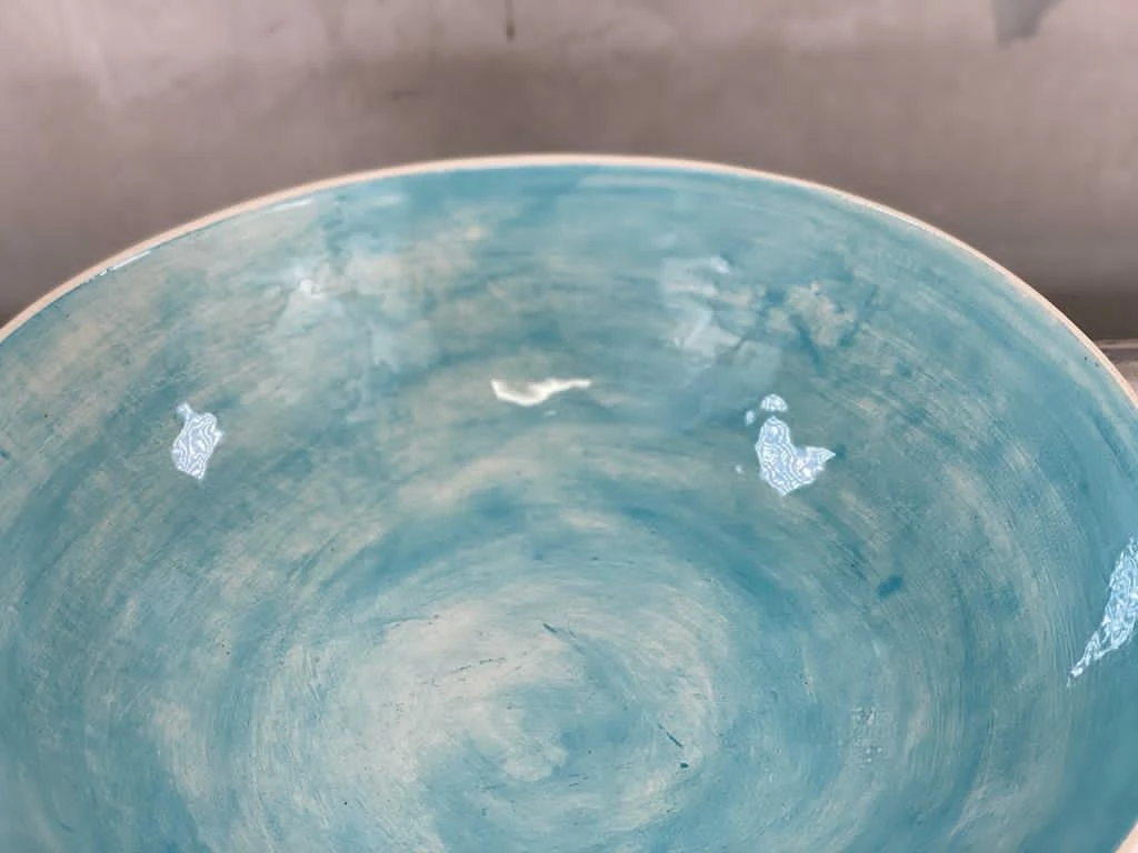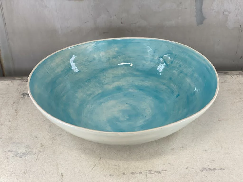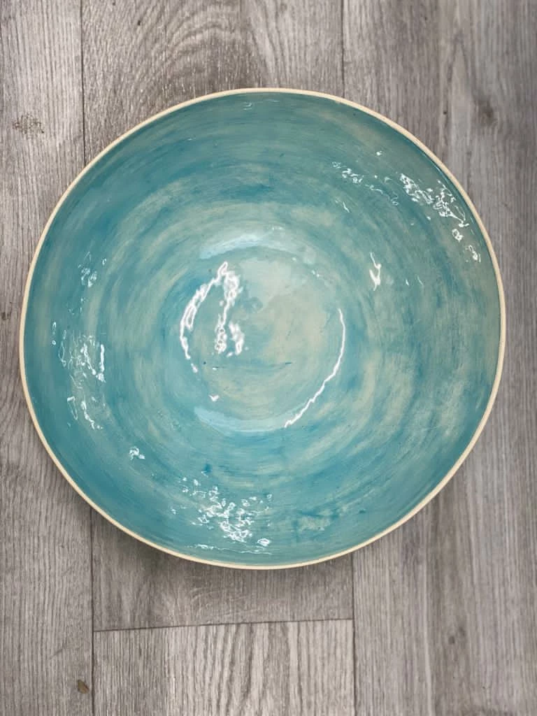 A medium salad bowl in a plain turquoise washΒ which beautifully compliments the large size salad bowl.
