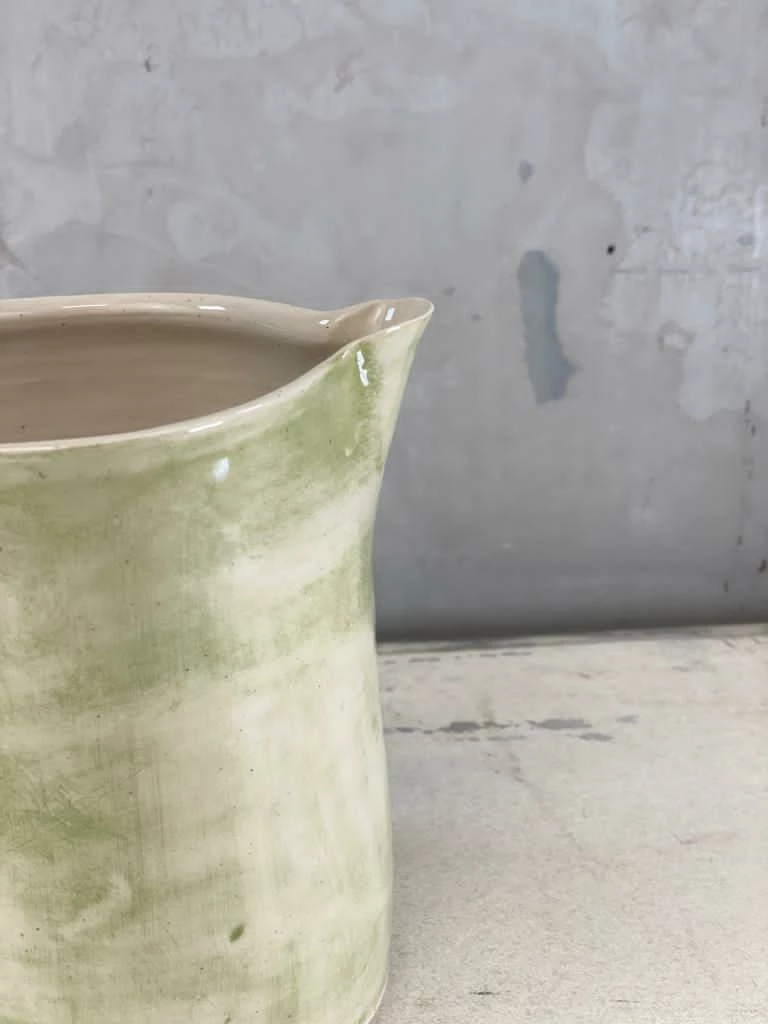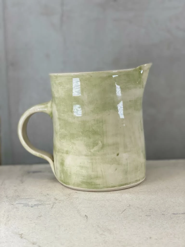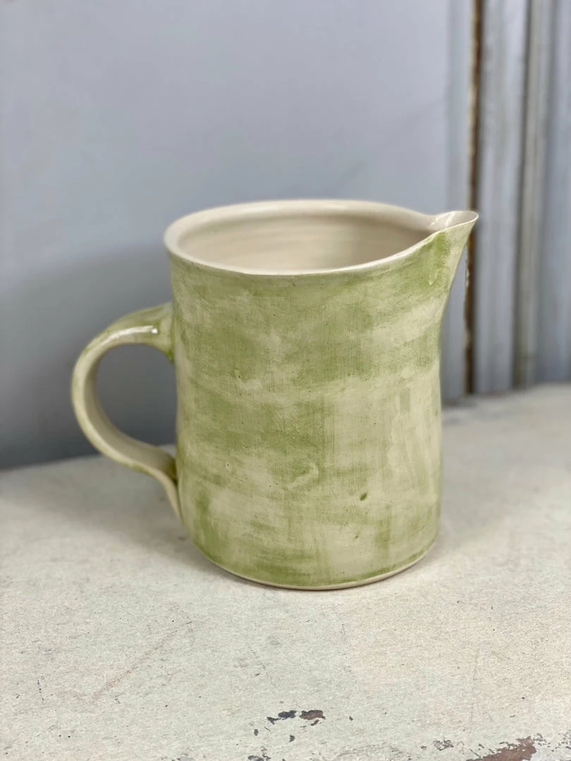 Handcrafted 1 litre ceramic jug in a beautiful Β Irish green wash. Each piece of Wonki Ware is Β coloured and decorated by hand from organic clay in South Africa. Β